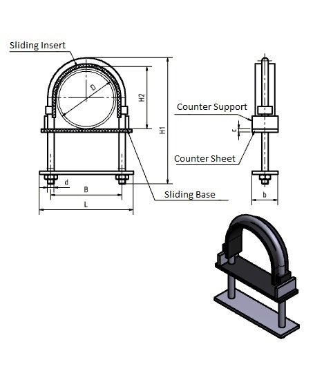 Pipe ø | Total Height | Height | Thread | Length | Width | Distance | Dimension | Stress (kN) | Counter Support | ||